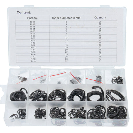 300-tlg Innen-Seegerring Sprengring-Sortiment Ø3-32 mm + Sicherungszangen Satz