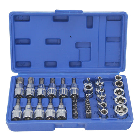 34-tlg Außen Torx Nüsse Innentorx Nuss Steckschlüssel Satz Bits Werkzeug 3/8" Kfz