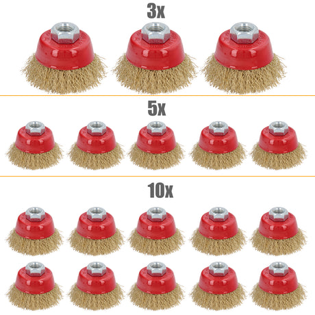 3/5/10-tlg Topfbürste Drahtbürste Ø 65mm M14 Flex Winkelschleifer Messing besch