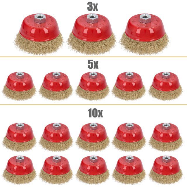 3/5/10-tlg Topfbürste Drahtbürste Ø 100mm M14 Flex Winkelschleifer Messing besch