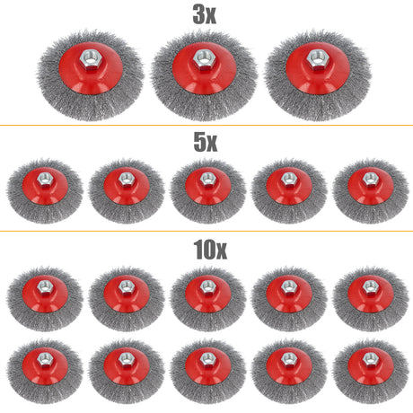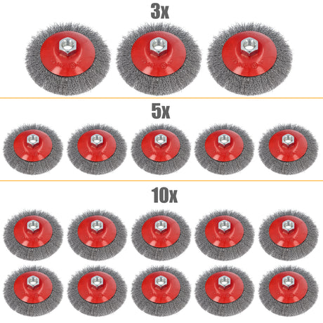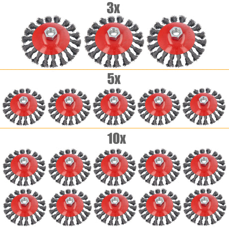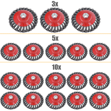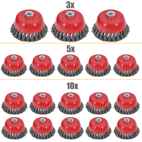 3/5/10-tlg Topfbürste Drahtbürste Bürste Ø 100mm gezopft M14 für Winkelschleifer