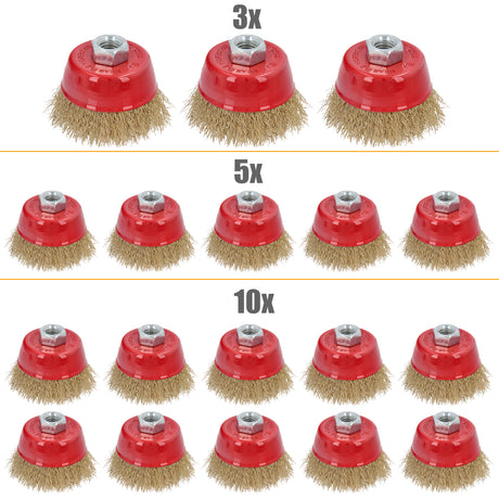 3/5/10-tlg Topfbürste Drahtbürste Ø 75mm M14 Flex Winkelschleifer Messing besch