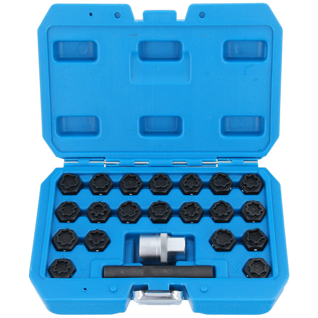 Dieser Radschlosssatz verfügt über einen Satz von zwanzig Schlüsseln zum Entfernen der Radmuttern bei Audi (2002-2012) Fahrzeugen.